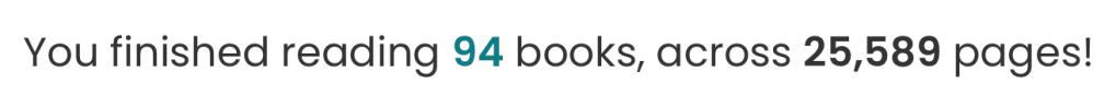 Sometimes then setting my “read ## books” goal I will include rereads and sometimes not. Or sometimes I only include books that could be tracked on Goodreads (since Storygraph also allows me to add my own “non-book” entries for things like individual short stories). But by whichever metric you like, I completely smashed this goal.