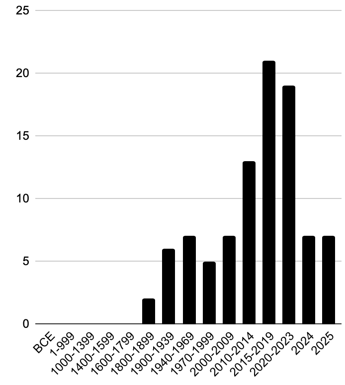 This was very hit and miss – sometimes I reached it easily, and sometimes not at all. In 2026 I’m going to keep a similar goal but slightly lower the requirement in the hopes of being able to more consistently hit it. - Read at least 1 short story or essay per week