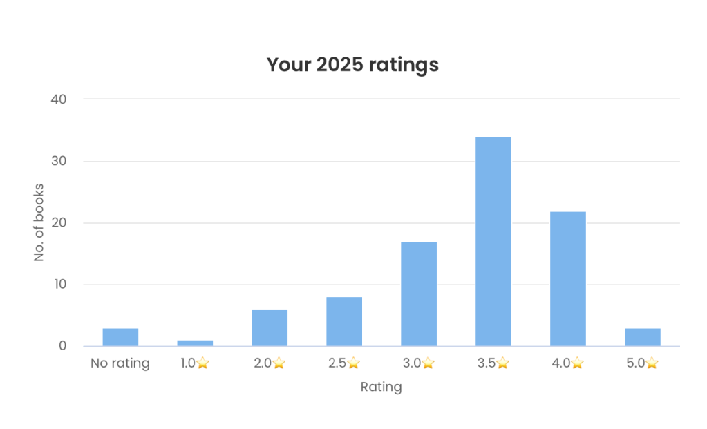 We’ve discussed all my goals from 2025 now, but don’t go anywhere! Although maths isn’t really my thing, recording information and creating fun statistics definitely is (weird how that works). So not only do I have some fun stats from the Storygraph to give you, I also have some fun graphs of my own (some of which you’ve seen above).