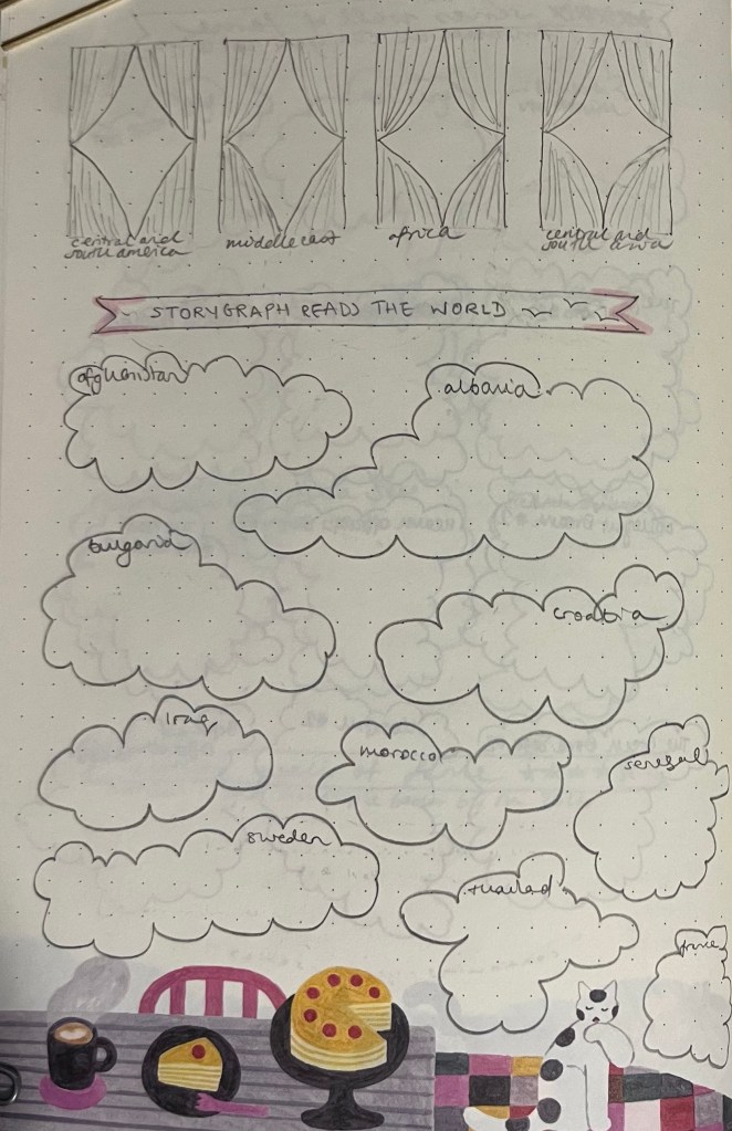 I’d also like to actually complete the Storygraph Reads the World challenge this year. I joint it every year and then never get very far with it. It’s a pretty simple challenge: every year, the Storygraph picks 10 countries and you try to read a book from that country. This year the countries are: Afghanistan, Albania, Bulgaria, Croatia, France, Iraq, Morocco, Senegal, Sweden, and Thailand. I’d love recommendations for these too!