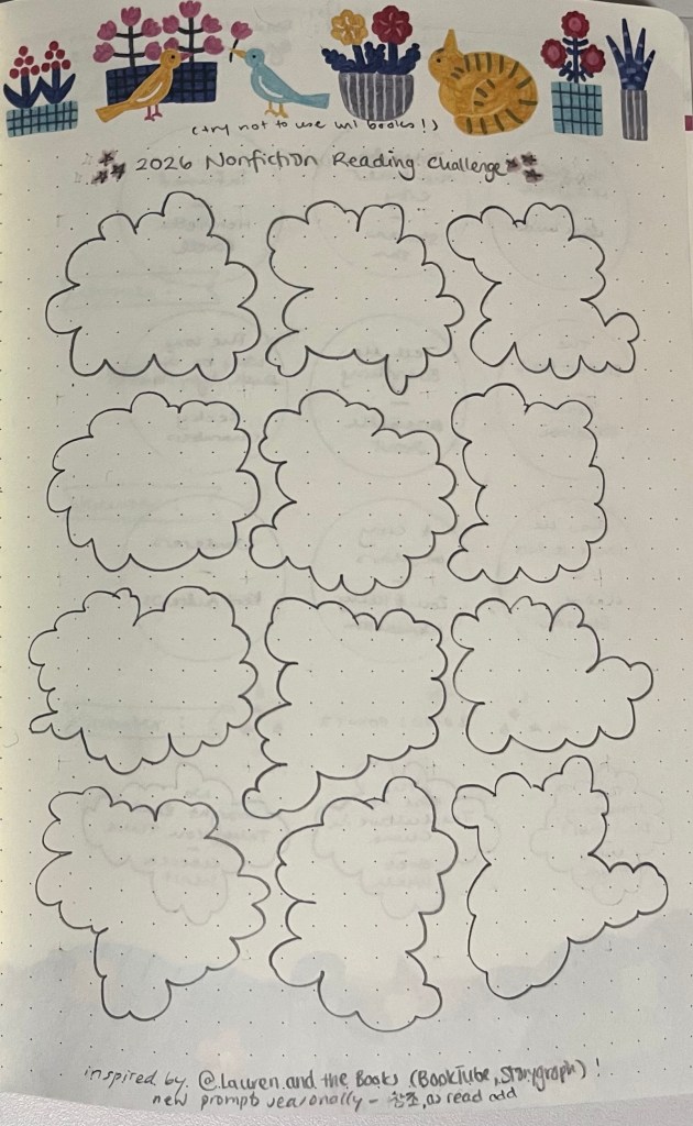 It’s a pretty basic challenge – basically I want to read 12 nonfiction books in 2026. I’m going to start by saying I want them to be books I choose to read outside of what I need for my classes or my master’s thesis, but we’ll see how things go.